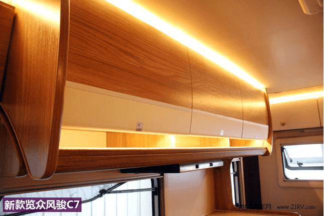 新款C7房车在内饰做出最大的改动莫过于标配车型加装了可开启的全景天窗,在老款车型上是没有的,对于外出旅行露营来讲,能和汽车一样享受大自然的拥抱是一种非常惬意的事情。这一改动有效的提高了室内的空气流通。